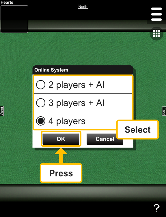 4. Select the number of players. (This dialog is not shown when there are only two players.) | |
