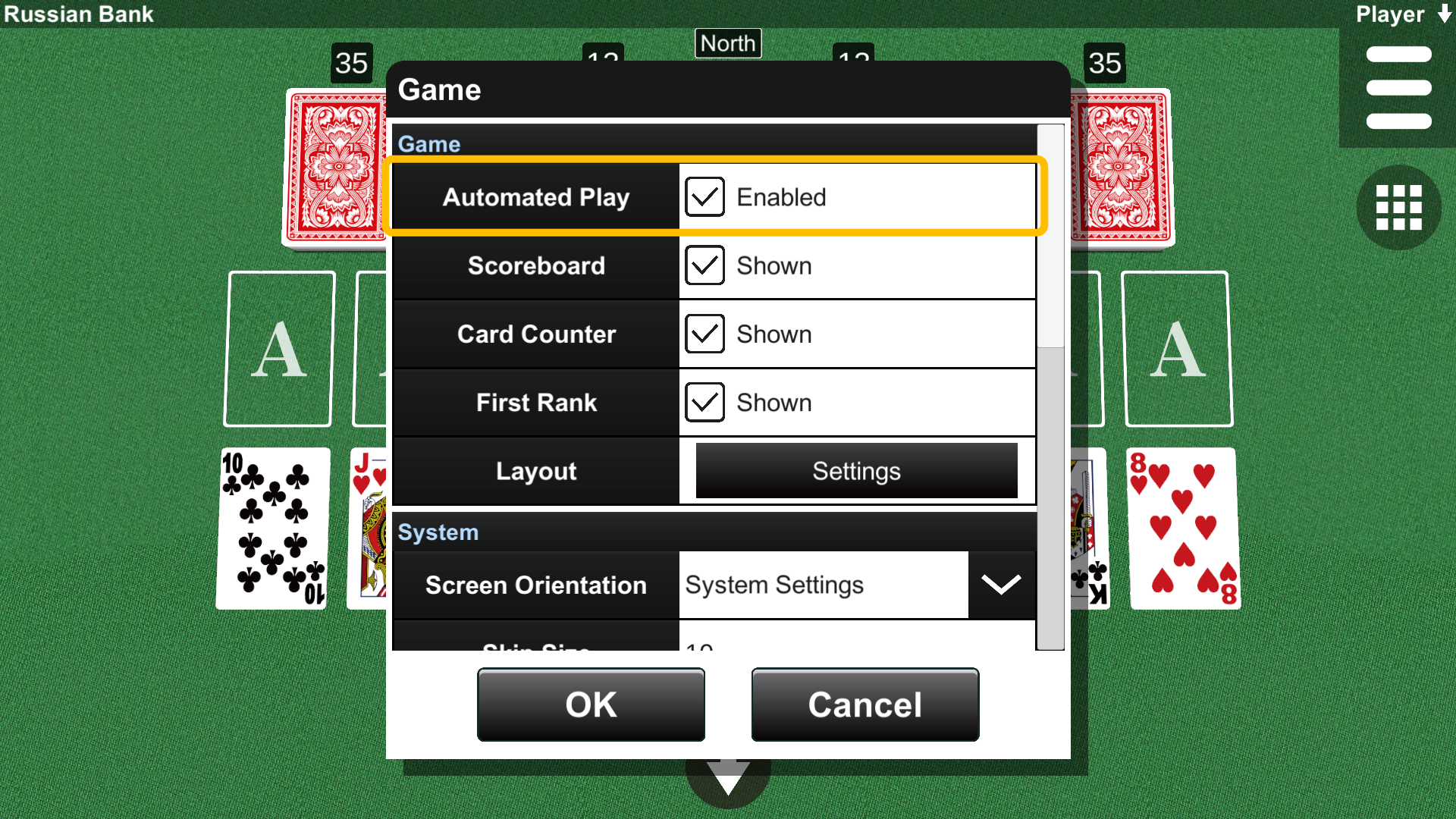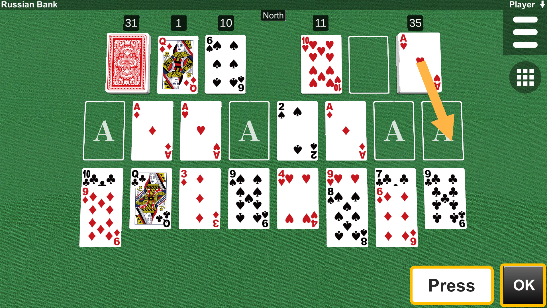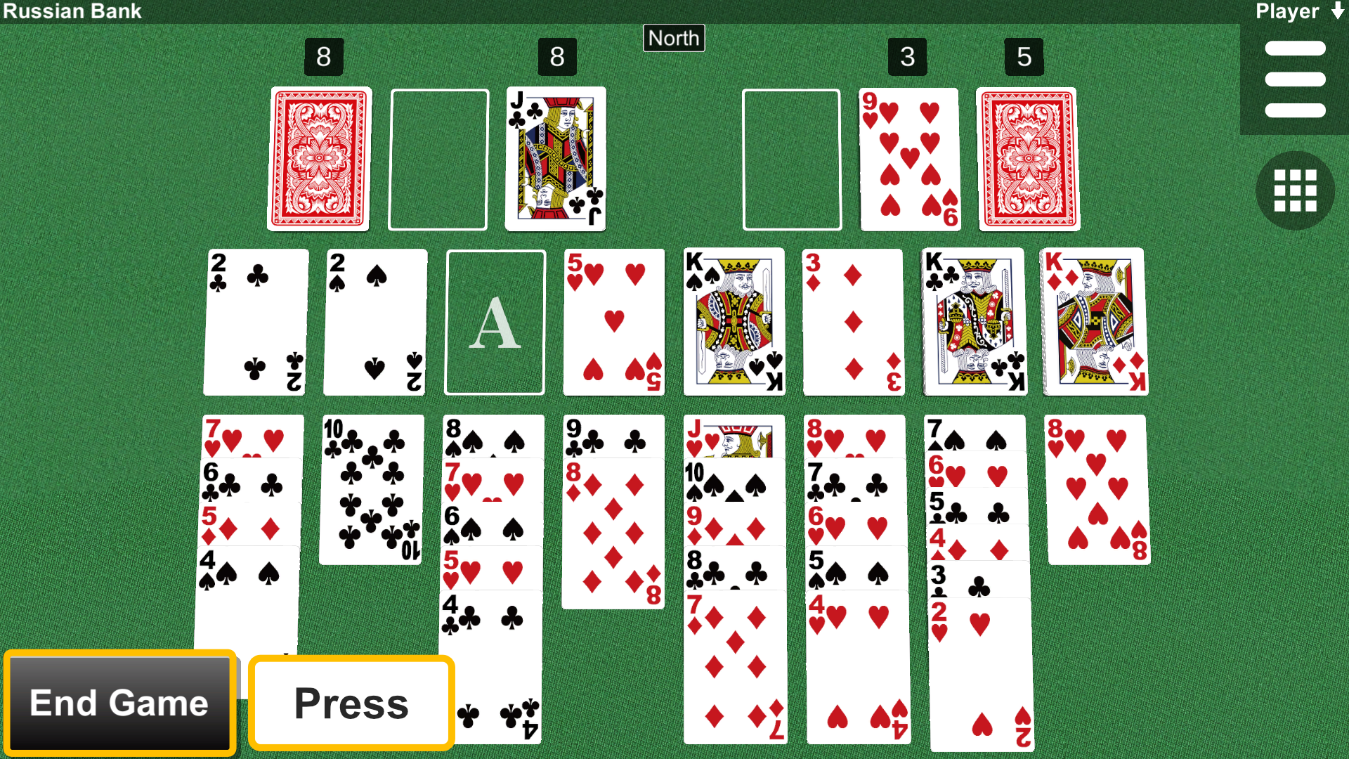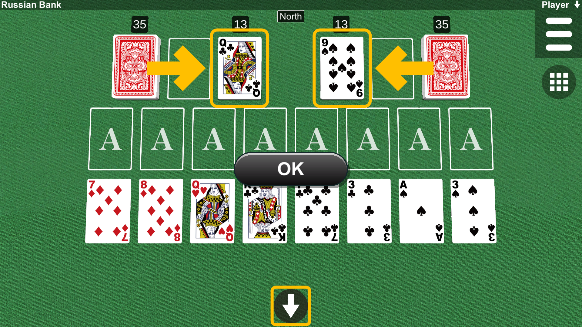 Russian Bank is a competitive solitaire game for two players, also known as Crapette. The objective of the game is to remove all of a player's cards. Press the Play button to start the game (Fig. 1).