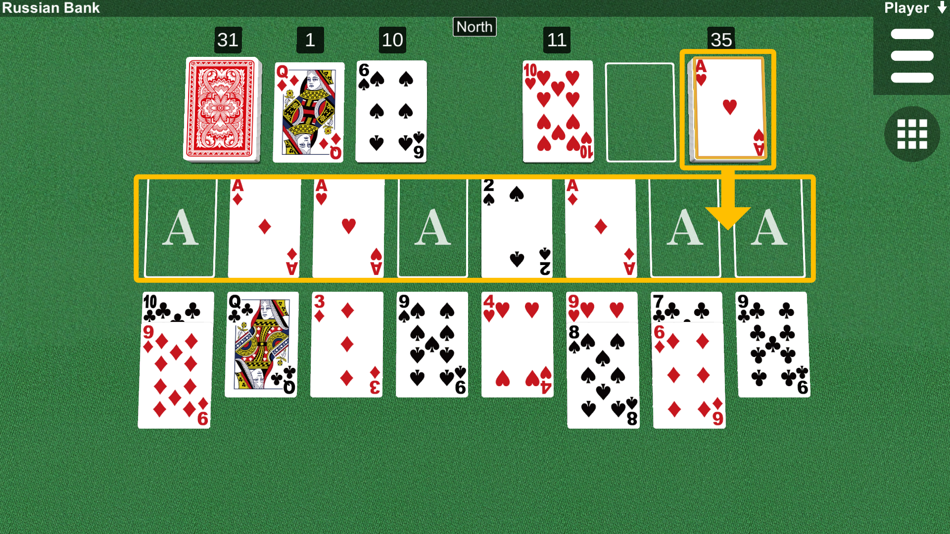 Players must make the following compulsory moves in order of priority:- If a card can be moved from the reserve to the foundation, it must be moved.